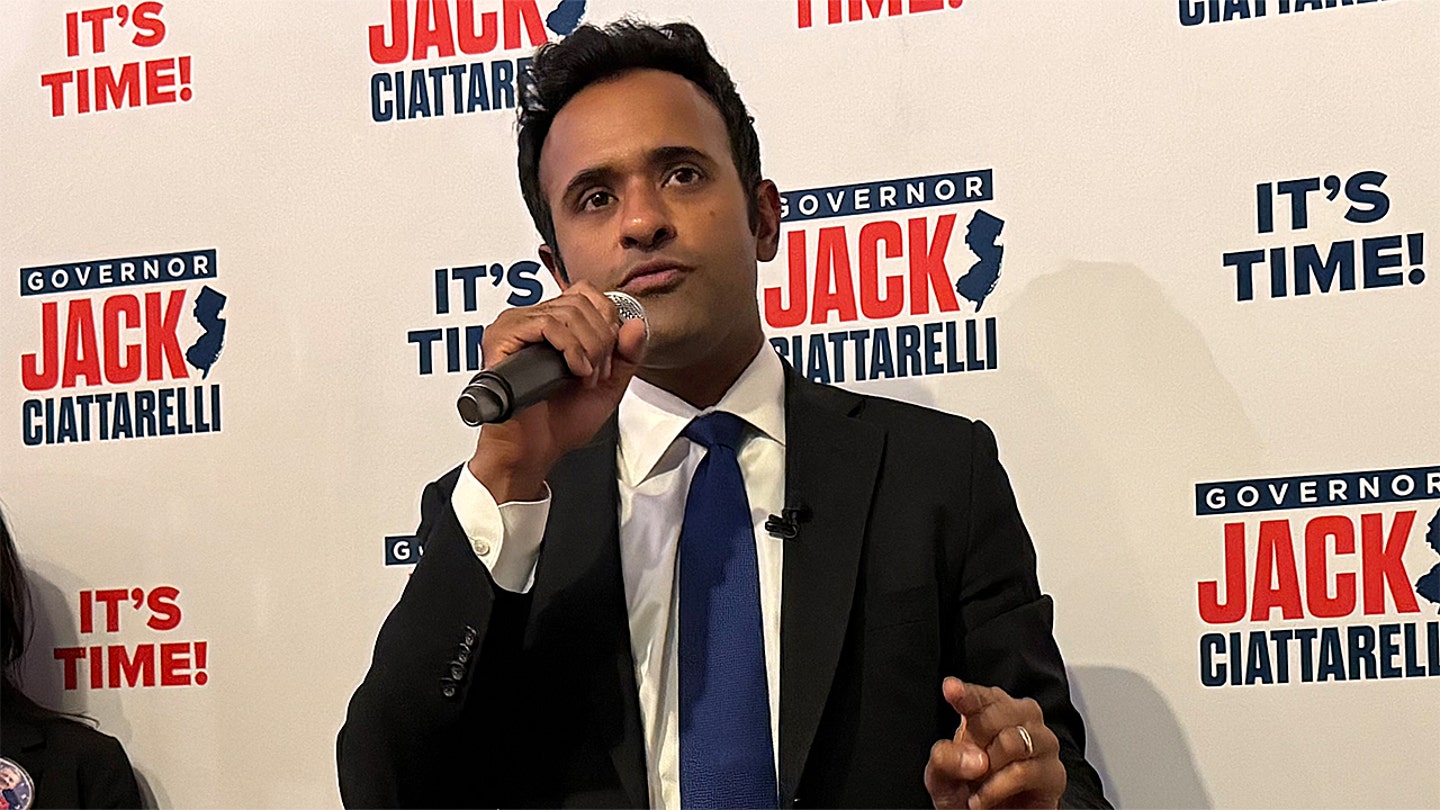 O candidato republicano a governador de Ohio, Vivek Ramaswamy, é a manchete de um evento de campanha para o candidato republicano de Nova Jersey para governador Jack Ciatarelli em 15 de outubro de 2025 em Saddle Brook, NJ (Paul Steinhauser-Fox News)