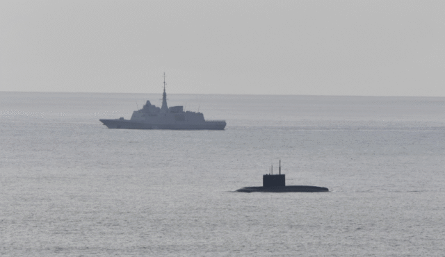 “Uma Marinha Francesa gere a vigilância das políticas marítimas da aliança de fragatas, que representa a presença de um submarino russo na superfície da Bretanha.