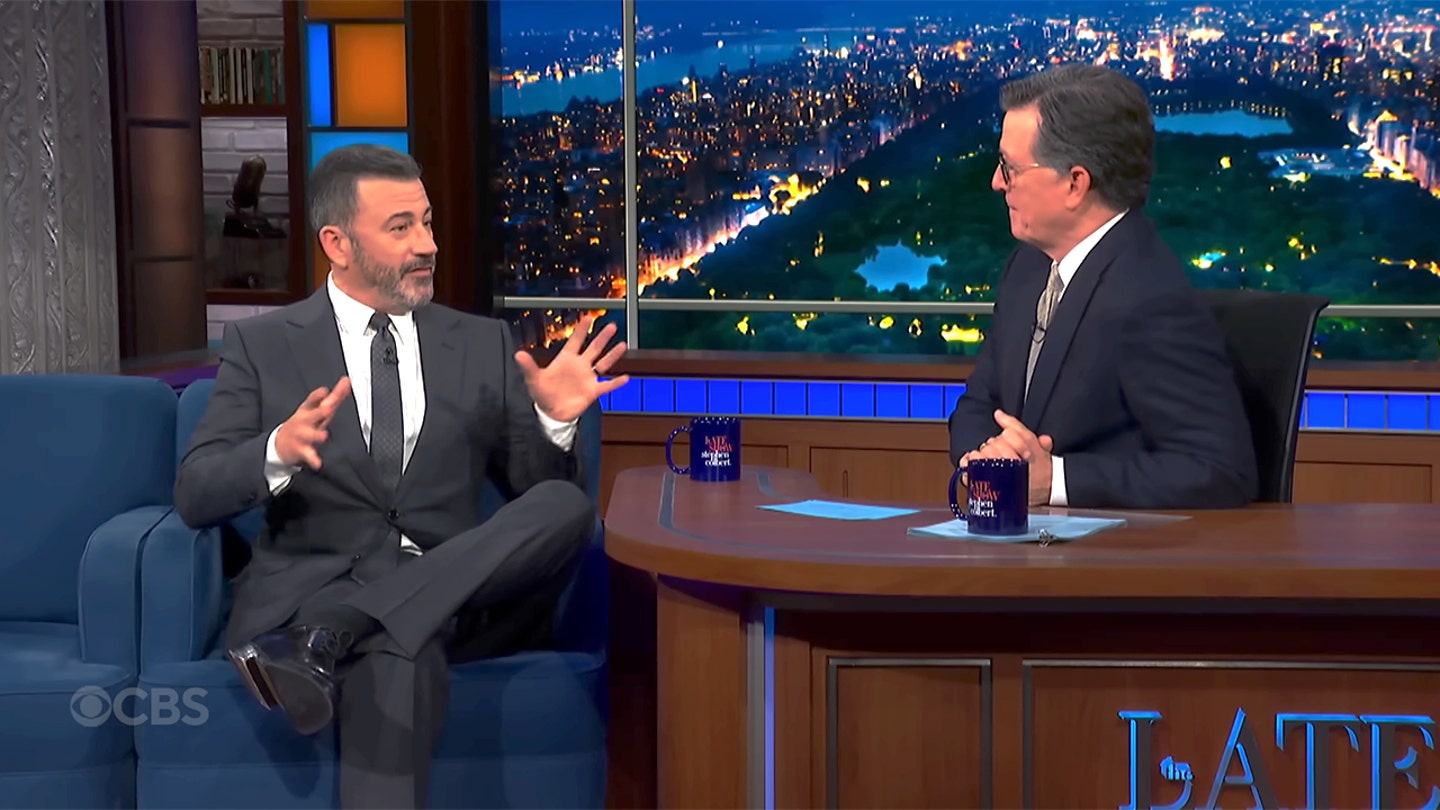 À meia-noite, os apresentadores Jimmy Kimmel e Colbert estavam no centro da polêmica, enquanto alguns foram informados sobre o futuro dos talk shows noturnos. .
