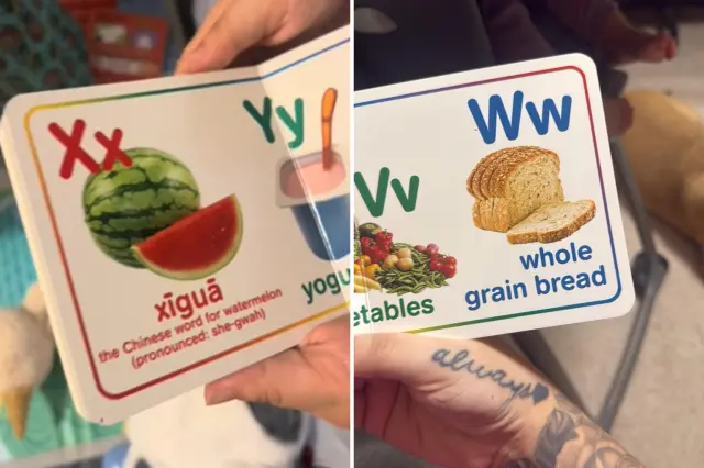 Uma mulher ficou chocada depois que sua sobrinha de 1 ano descobriu qual livro do alfabeto foi escolhido para representar a letra X enquanto folheava seus livros.