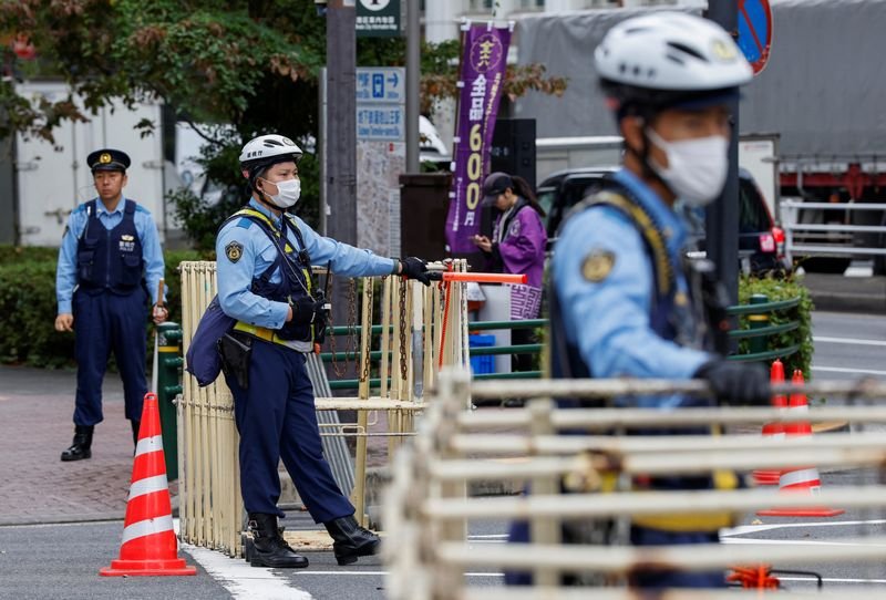Milhares de policiais protegem Tóquio. Um homem armado com uma faca foi preso em frente à Embaixada dos EUA na sexta-feira, e um protesto anti-Trump está planejado no centro de Shinjuku.