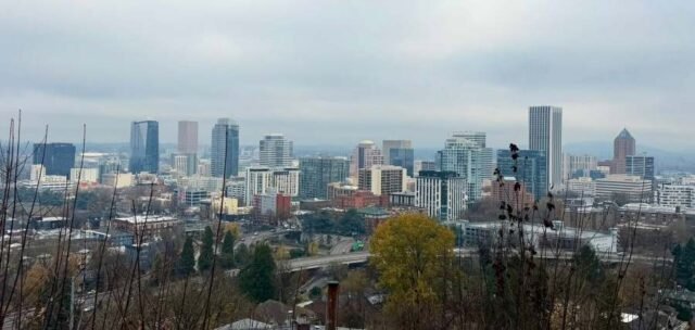Um domingo chuvoso em Portland oferece pôr do sol depois das 19h, graças ao horário de verão.