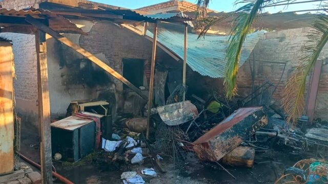 Um grande incêndio deixou uma casa no bairro Francisco de Aguirre com danos físicos significativos.