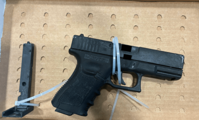 Uma unidade canina localizou uma arma, que foi identificada como uma “arma de chumbo de aparência realista”, disse a polícia.