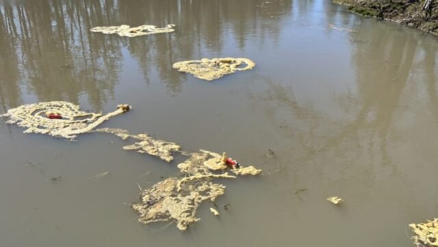 As autoridades estão procurando suspeitos depois que um lago perto da área de vida selvagem de White River foi contaminado com espuma em spray.