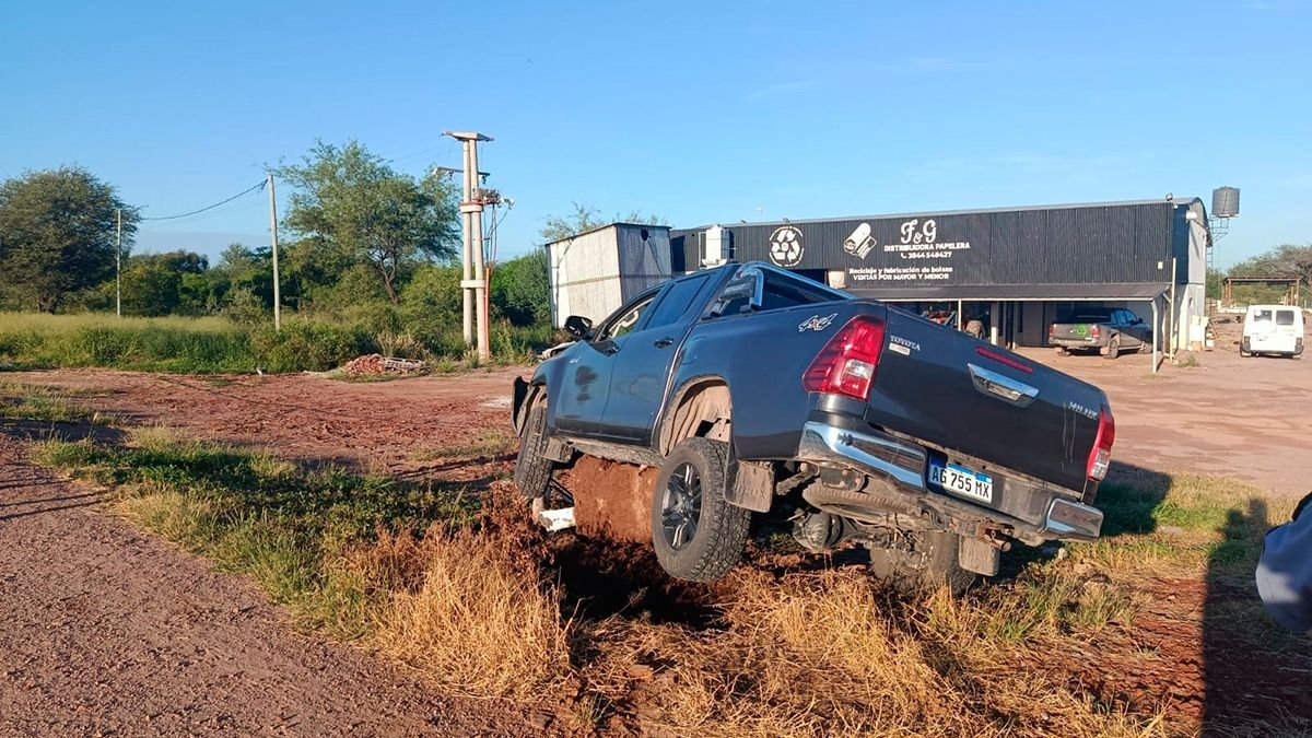 Uma Toyota Hilux bateu em uma coluna de iluminação no bairro San Cayetano. Apenas danos materiais são registrados.