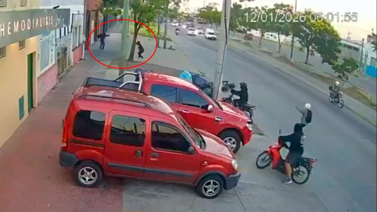 Por sua vez, seus companheiros escaparam ao ver a cena: um deles Ele saiu de motoOs outros dois se abandonaram Janela 110 cc e na rua Eles fugiram a pé.
