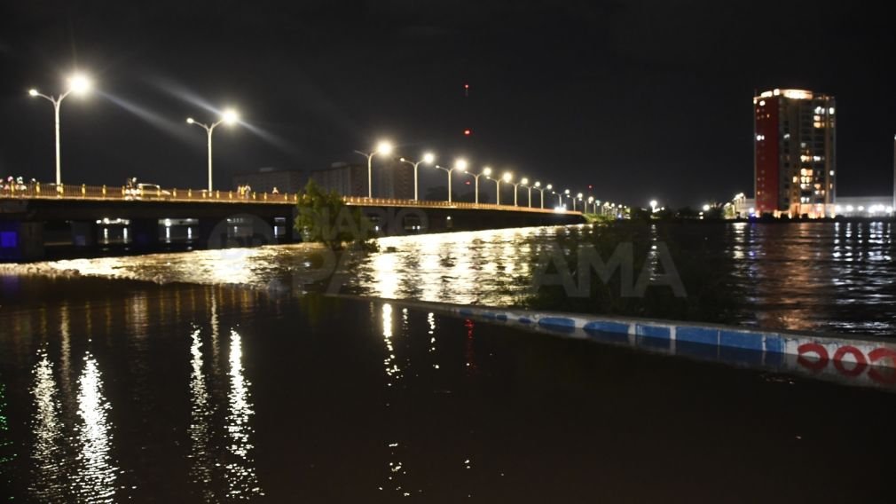Em vídeos e fotografias capturadas na área você pode ver Como a água se move tão fortementeSuperar barreiras de controle colocadas durante o dia para impedir o efeito das enchentes.
