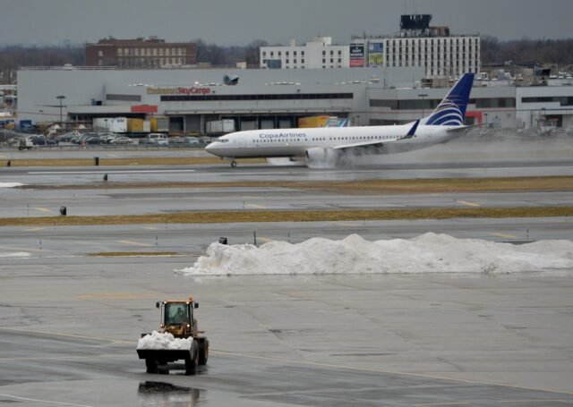 Centenas de voos foram interrompidos nos aeroportos de Nova York no fim de semana, quando os meteorologistas alertaram que o sistema de tempestades traria efeitos climáticos de inverno para a região.