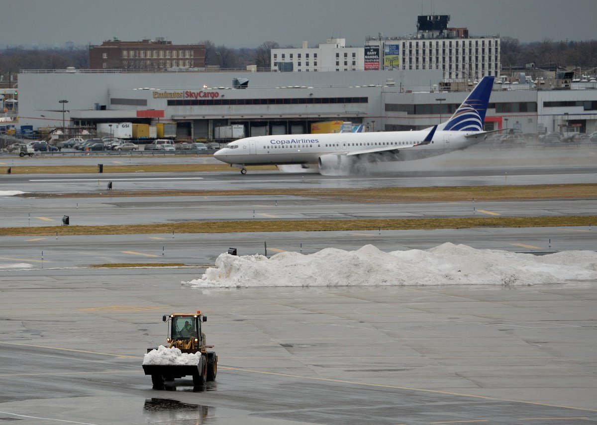 No domingo, John F. Pelo menos 193 voos foram atrasados e 124 cancelados no Aeroporto Internacional Kennedy; 131 atrasos de voos e 112 cancelamentos no Aeroporto LaGuardia; E de acordo com o NYC Emergency Management, 251 voos foram atrasados e 14 cancelados no aeroporto de Newark.