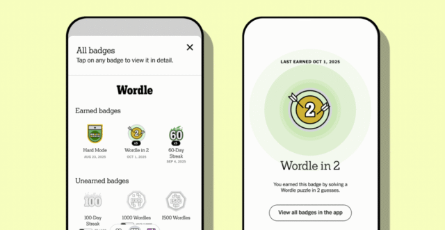 “Você alcançou seu objetivo infame? Wardle Às 1? Que tal perfeito? entre quebra-cabeça? Quantos pangramas você tem em seu currículo de Spelling Bee? Os emblemas são recompensas que você ganha ao jogar e que permitem relembrar momentos de sucesso. agora “Especial de viagem de jogo” De acordo com agora. No aplicativo, você também pode visualizar os emblemas em ‘Minha estante de troféus’.